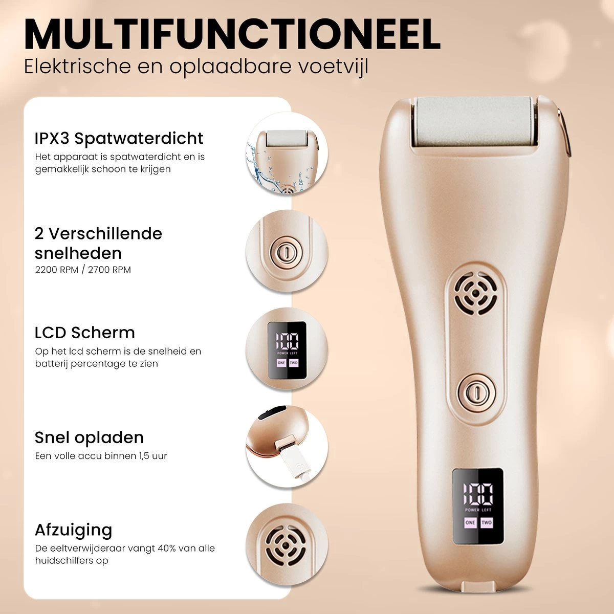 ✓ Vacuüm functie (geen rondvliegend eelt)