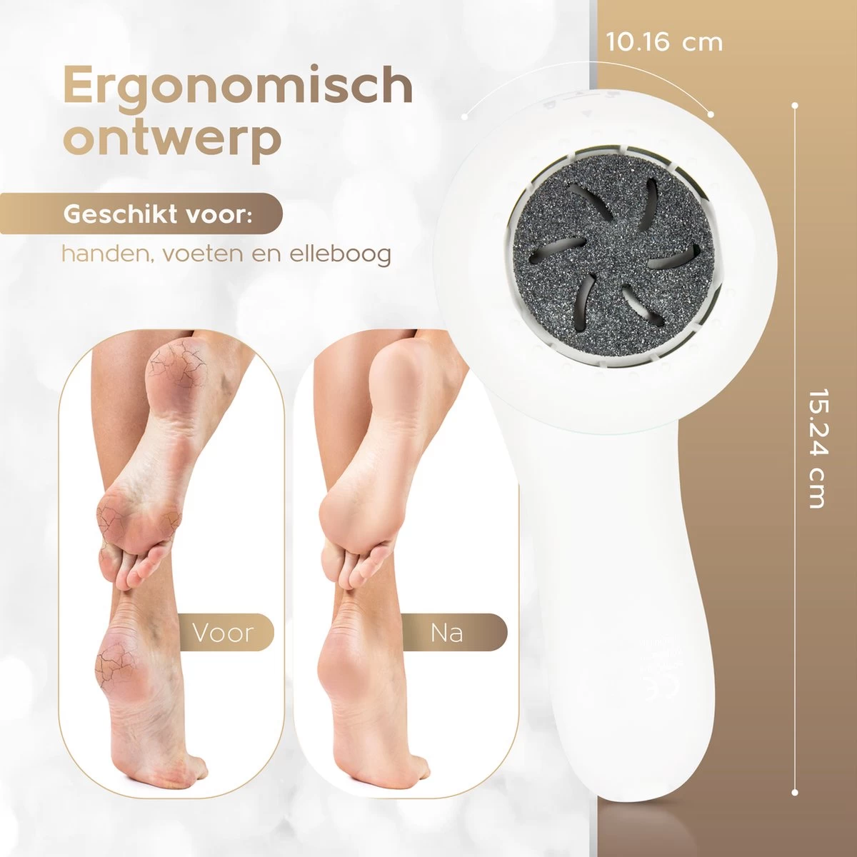 Met de Vibrix eelt verwijderaar krijgt u binnen enkele seconden mooi verzorgde en zachte voeten. Deze slimme elektrische eelt verwijderaar werkt met roterende vijlschijven en een ingebouwd stofzuigsysteem. Het ontdoet uw voeten van eelt en harde huid, zonder gedoe en ongemak, en nog belangrijker, zonder rommel! Het zuigt de losgekomen dode huidschilfers op en zorgt voor een hygiënische behandeling. Bovendien zijn batterijen niet meer nodig omdat dit apparaat usb oplaadbaar is. _______________________________________________________________________________________________